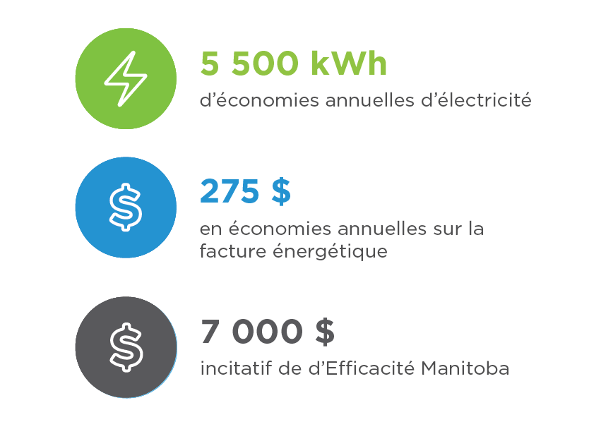 En tout, nous avons fourni à la clinique des incitatifs totalisant un peu plus de 7 000 $ pour achever les améliorations, qui devraient permettre à la clinique d’économiser environ 5 500 kilowatts-heures (kWh) d’électricité tous les ans. Les économies annuelles sur ses factures énergétiques s’élèvent à environ 275 $.